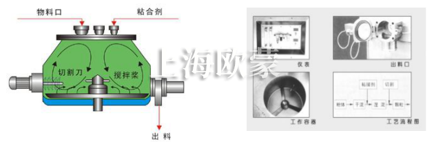 實(shí)驗(yàn)室高速混合濕法制粒機(jī)工作原理:
