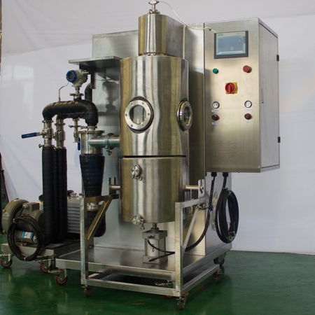 實驗室冷凍噴霧干燥機適用于熱敏性、粘稠性、活性物料及含糖量高的物料的低溫干燥,如中草藥天然產物提取液、乳制品、生物制劑、酶制劑、水果原汁、高分子材料等。